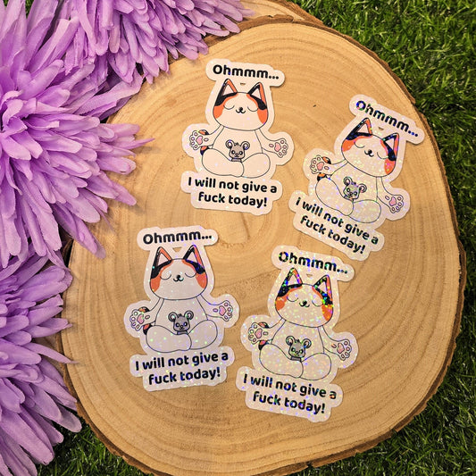 Ohmmm… I Will Not Give a F*ck Today Holographic Cat Sticker – Funny Yoga Vinyl Decal