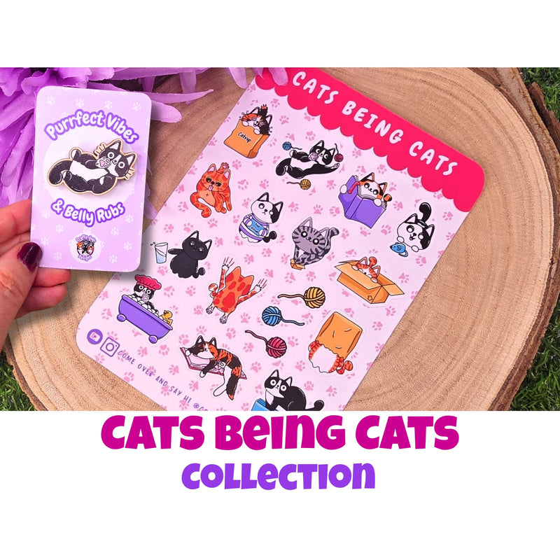 Every design. from wooden cat pins to vinyl sticker packs, is lovingly illustrated by me and inspired by the real cats in my life: my own beloved companions (past and present) and a few special kitties from friends who’ve shared their stories.