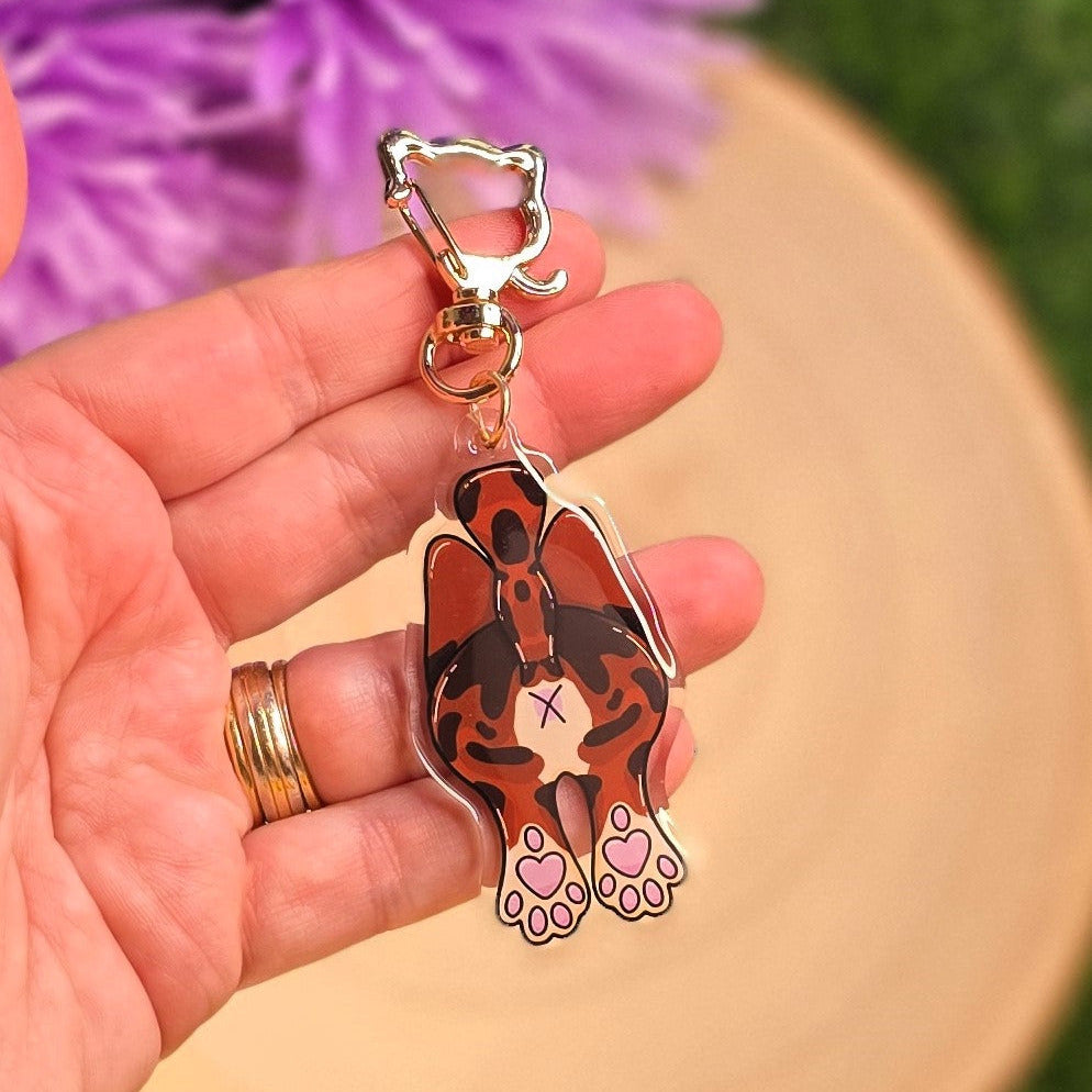 Cat Butt Acrylic Keyring – Brown Tabby - Double-Sided Cheeky Cat Accessory