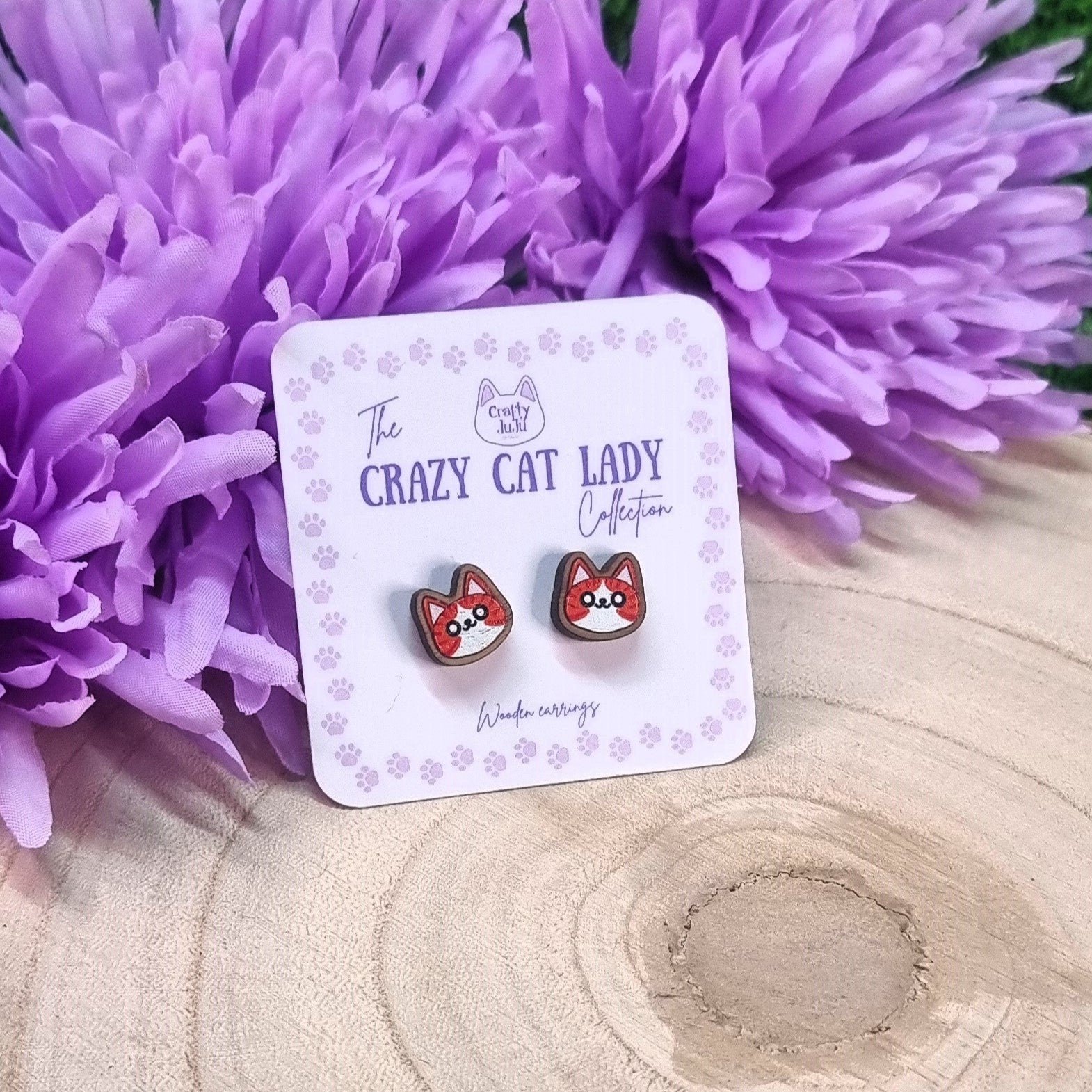 These adorable wooden cat head stud earrings are part of my Crazy Cat Lady Collection, with 10 different cat designs to choose from.