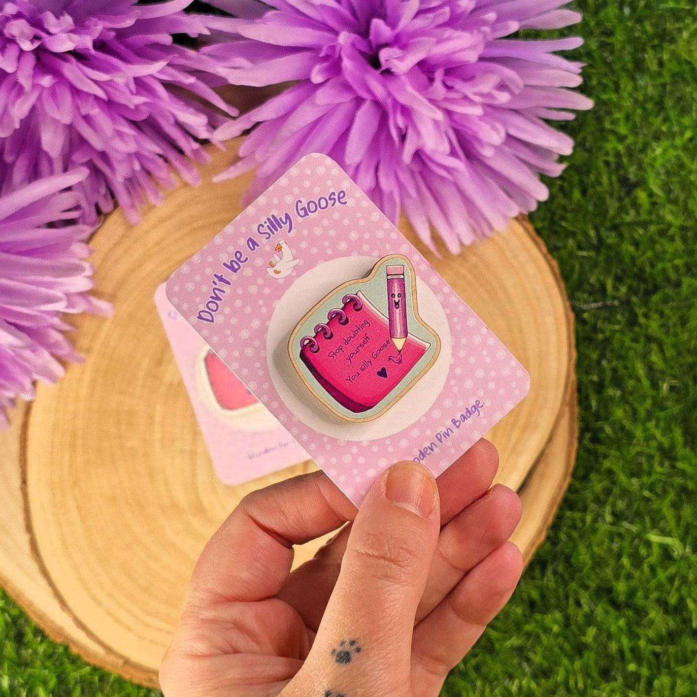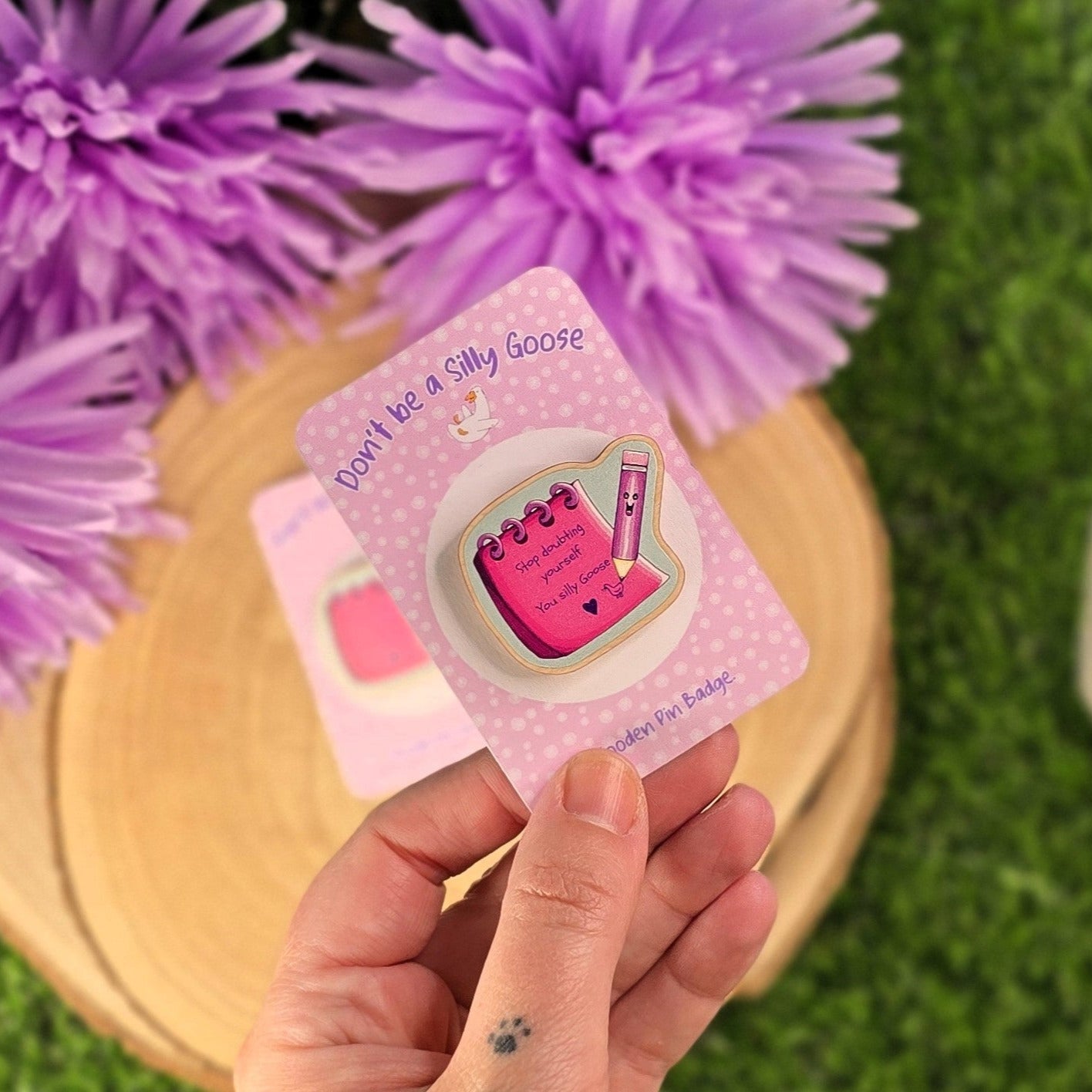 Keep your day light-hearted with this “Don’t Be a Silly Goose” Wooden Pin!